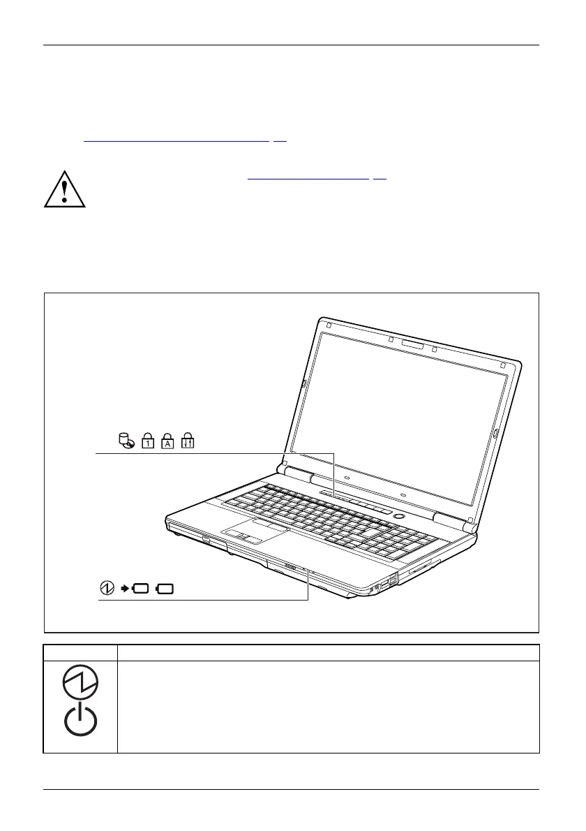 • The indicator is illuminated: The notebook is sw itched on.