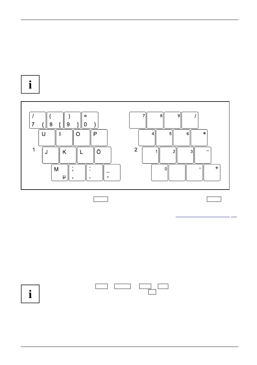 numeric keypad, you can output the characters shown on the upper right of the keys.