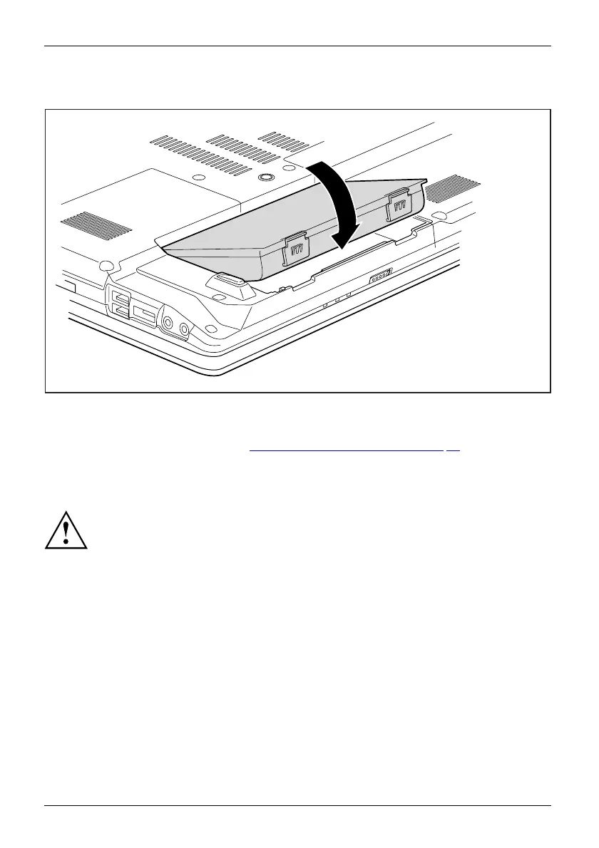 ► Push the battery into the battery slot until you feel it lock into place (1).