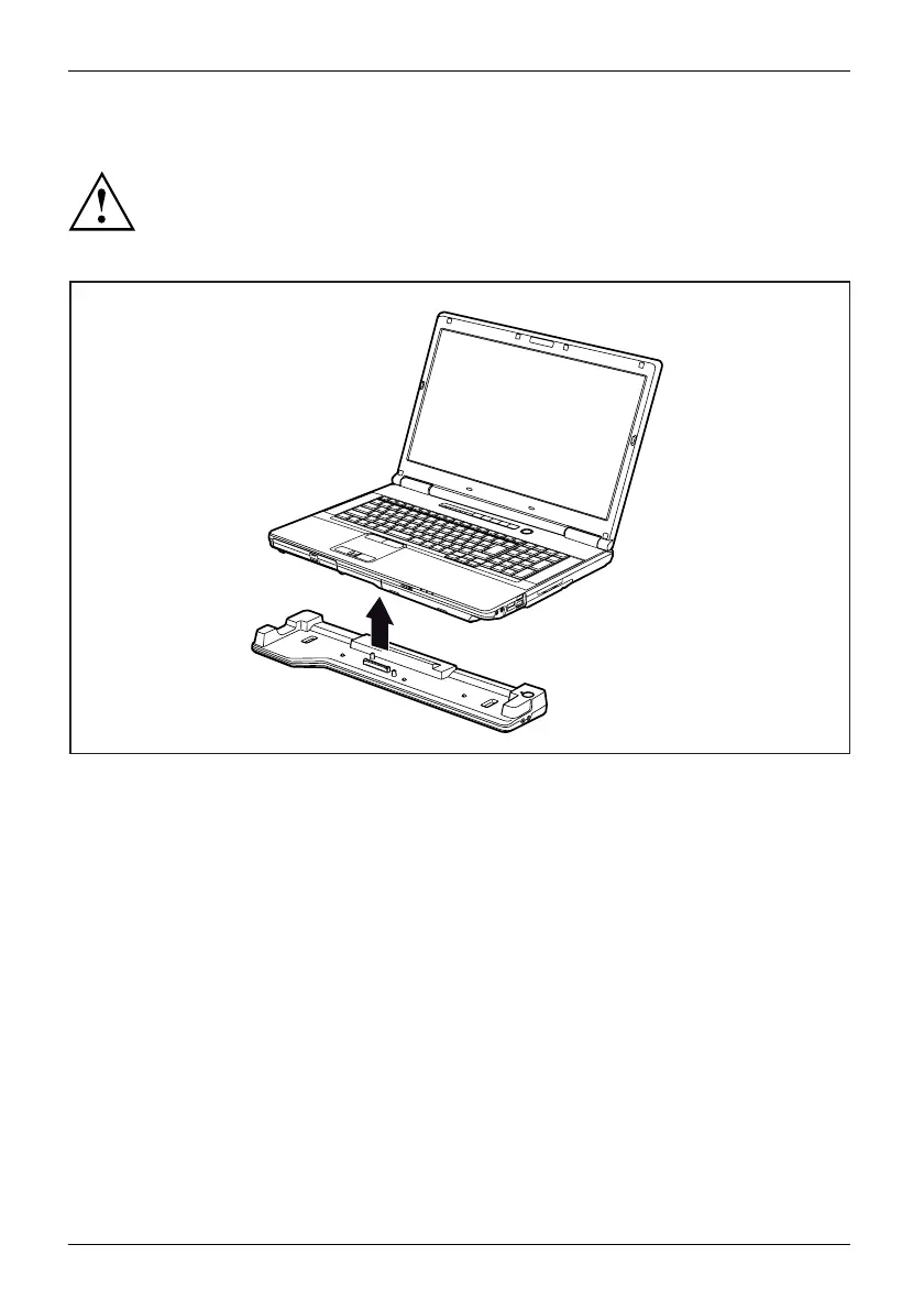 ► Press o n the Port Replicator with the thumbs and lift up the notebook (1).