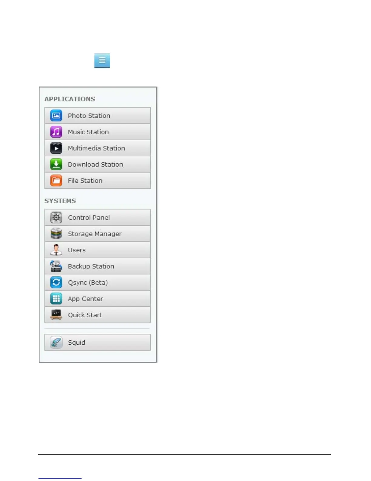 The sub-items enable access to NAS extensions that are provided and maintained by
