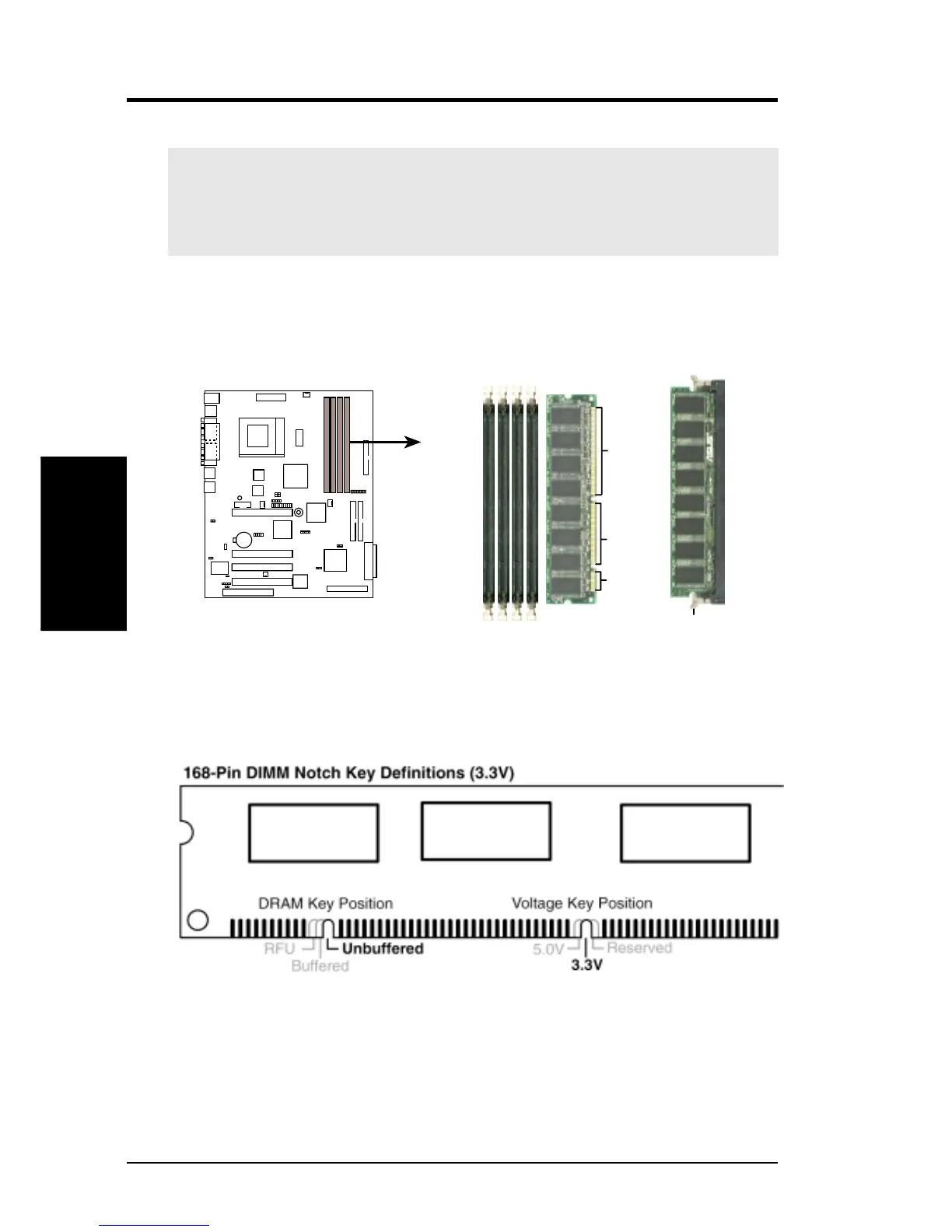 The DIMMs must be 3.3Volt unbuffered SDRAMs. To determine the DIMM type,