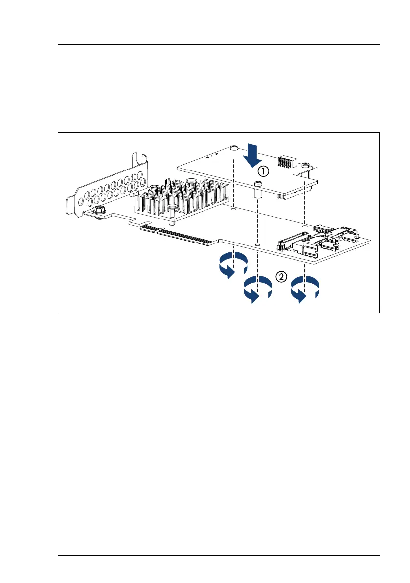 Ê Ground yourself, then fit the spacer bolts on the TFM on SAS RAID