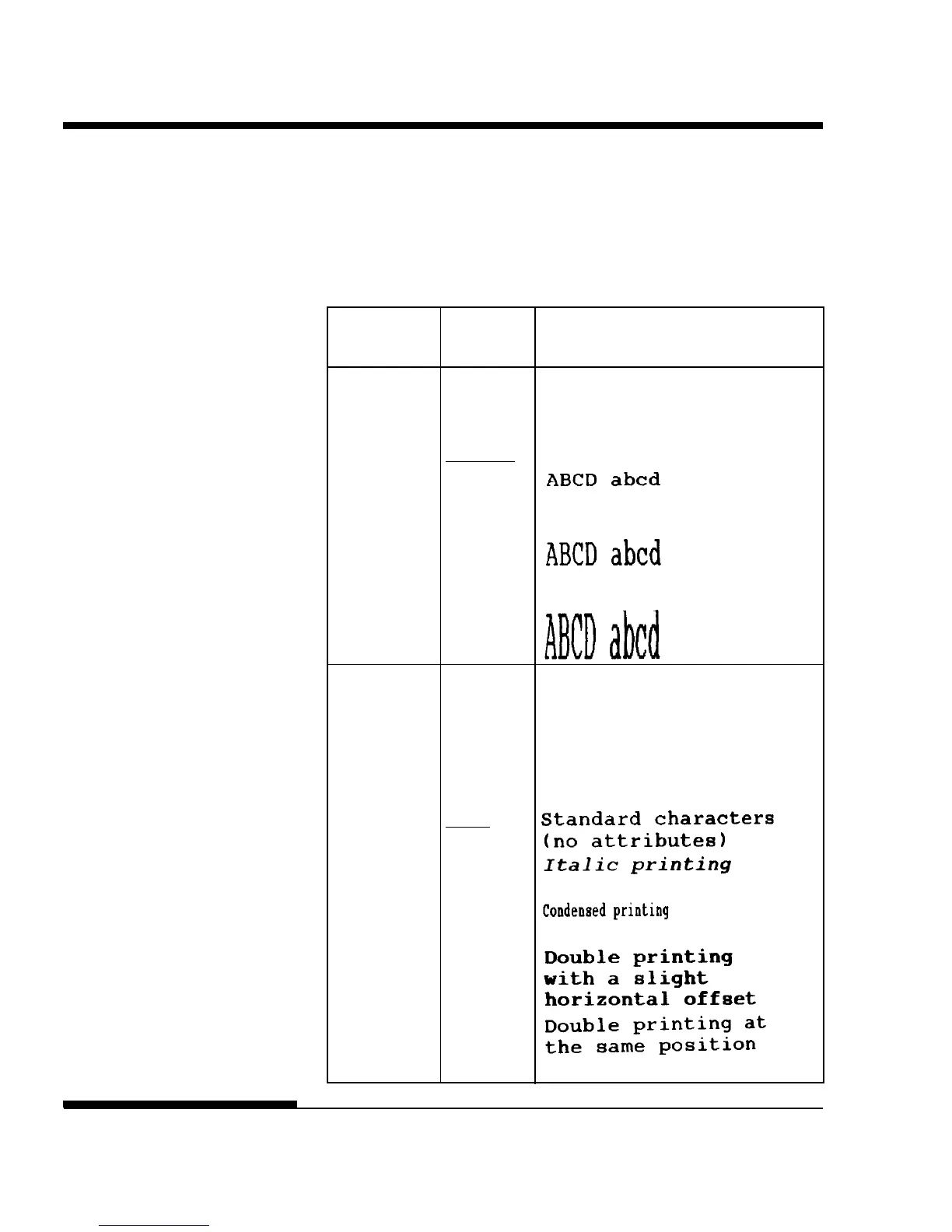 ESC/P2 emulations. The notes are defined at the end of the table.