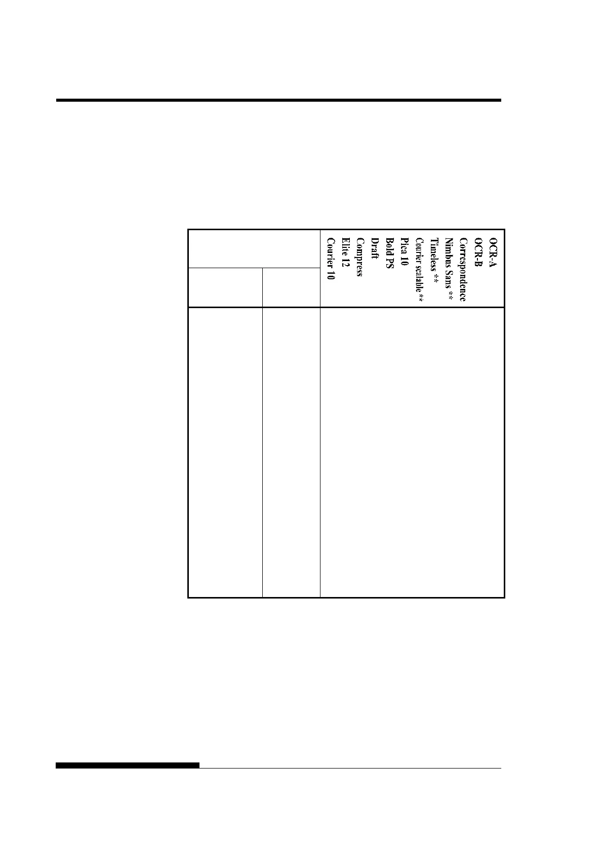 may not be usable, depending on resident fonts. The following tables