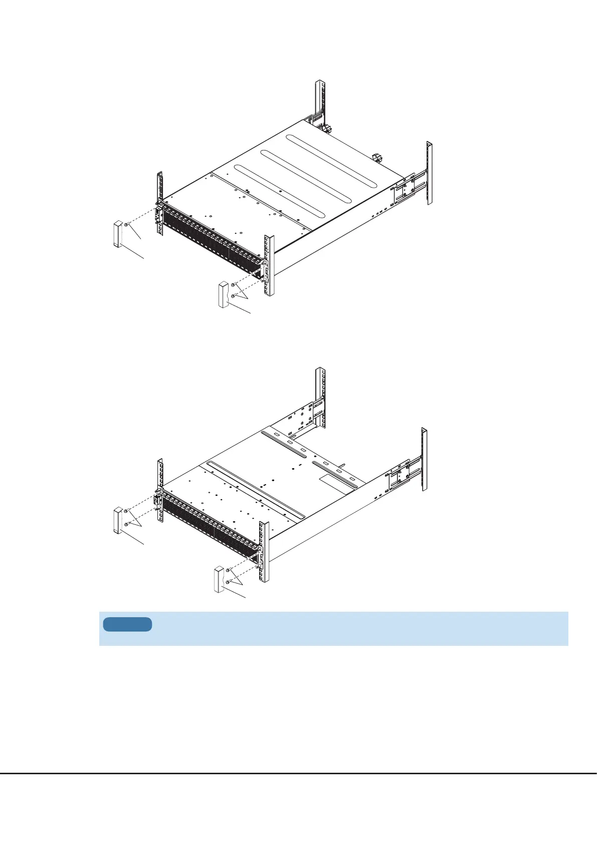 Use four M5 screws to fasten the drive enclosure to the rack pillars and attach the flange cover.
