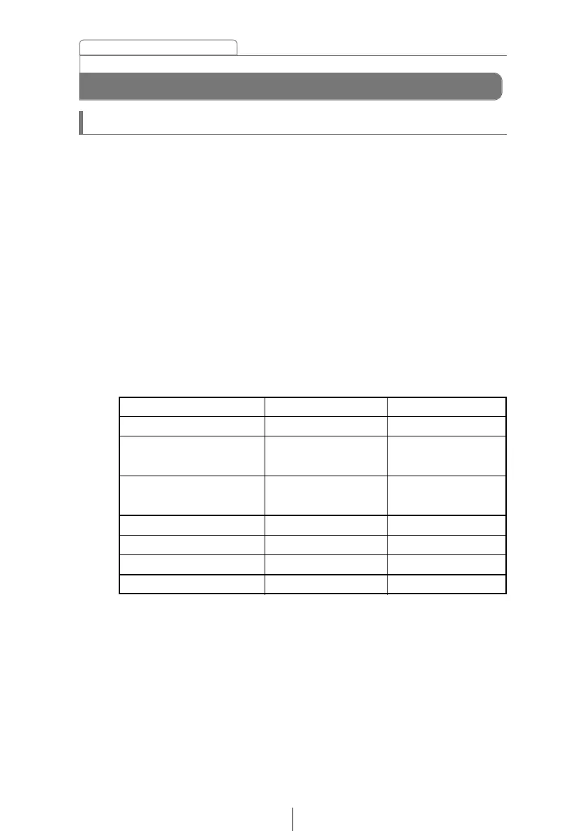 Refer to the table below and to the operations for each mode for