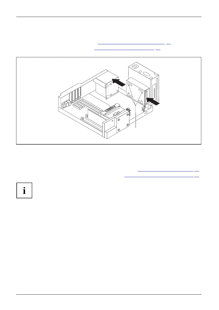 ► Push the drive a few centimetres out of the bay in the direction of the arrow (2).