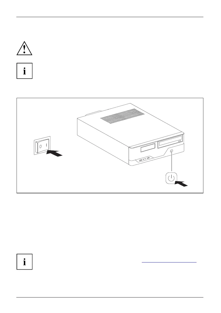► Switch the device on. To do this, follow the instructions below.