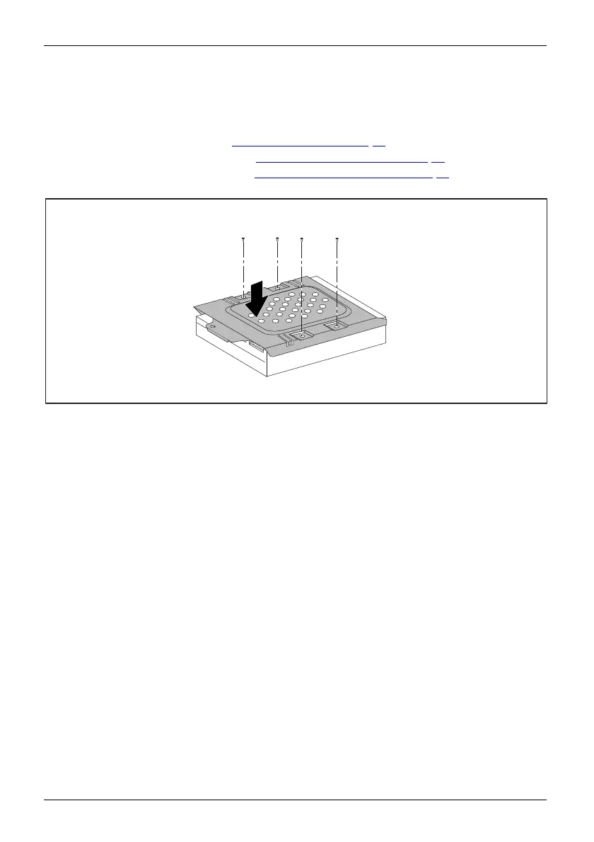 ► Place the hard disk d rive cage on the hard disk drive (1).