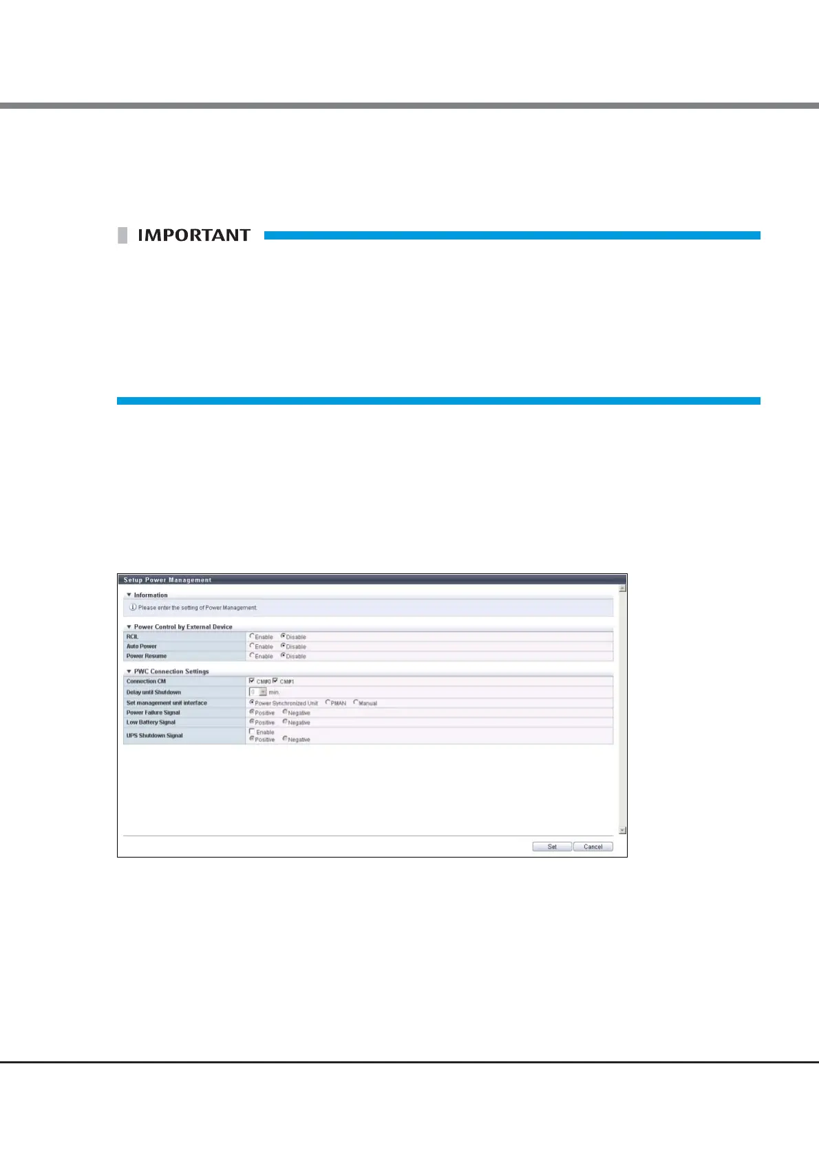 Perform the necessary settings for power synchronization by using the setting and maintenance program of the
