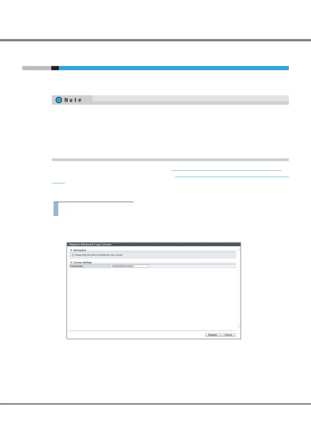 The registration status of the Advanced Copy license can be checked. Refer to "Setting (Advanced Copy)"