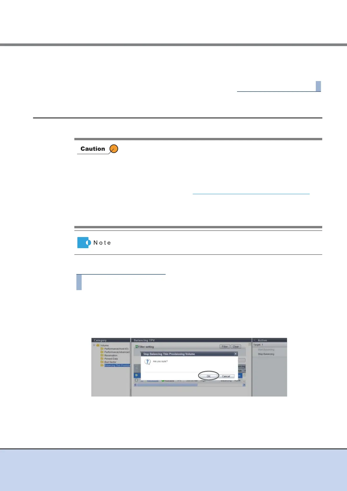 The procedure to stop balancing of the Thin Provisioning Volume is as follows: