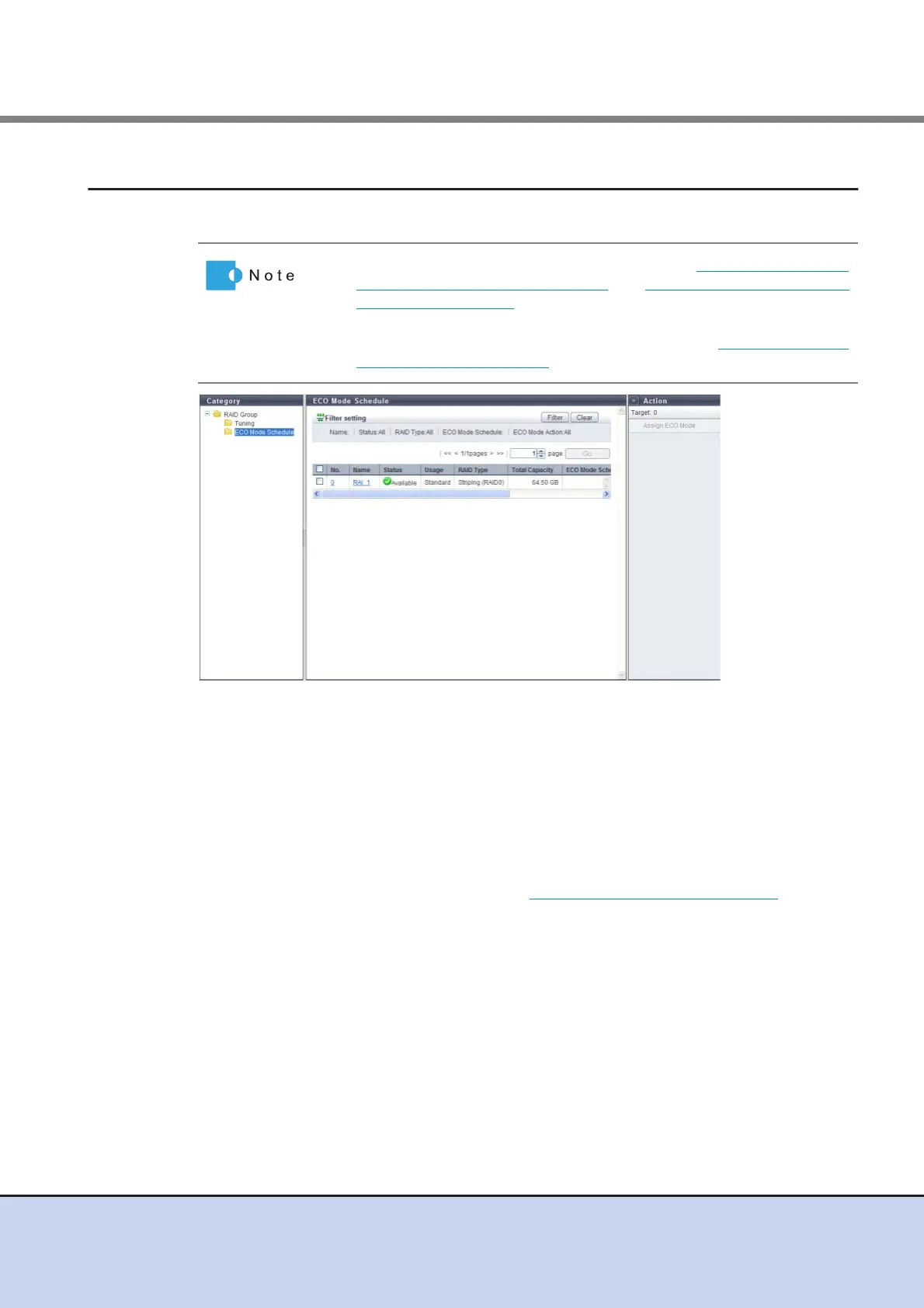 • To assign the ECO mode to a RAID group, refer to "6.2.7 Assign ECO