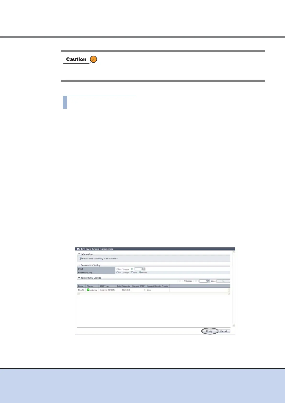 selections can be made) and click [Modify RAID Group Parameters] in [Action].