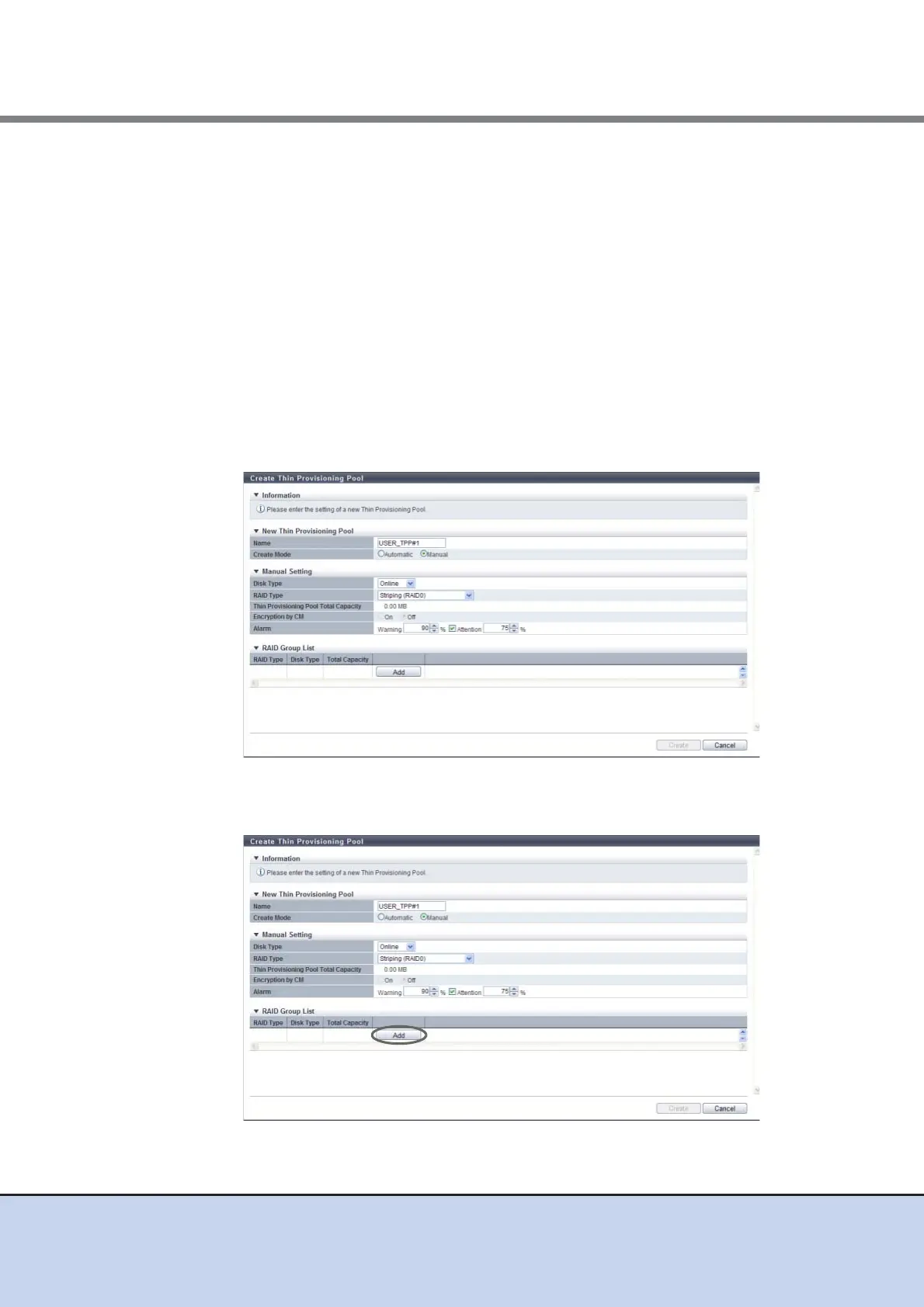 3 Click the [Add] button, and set the information of the RAID group that configures