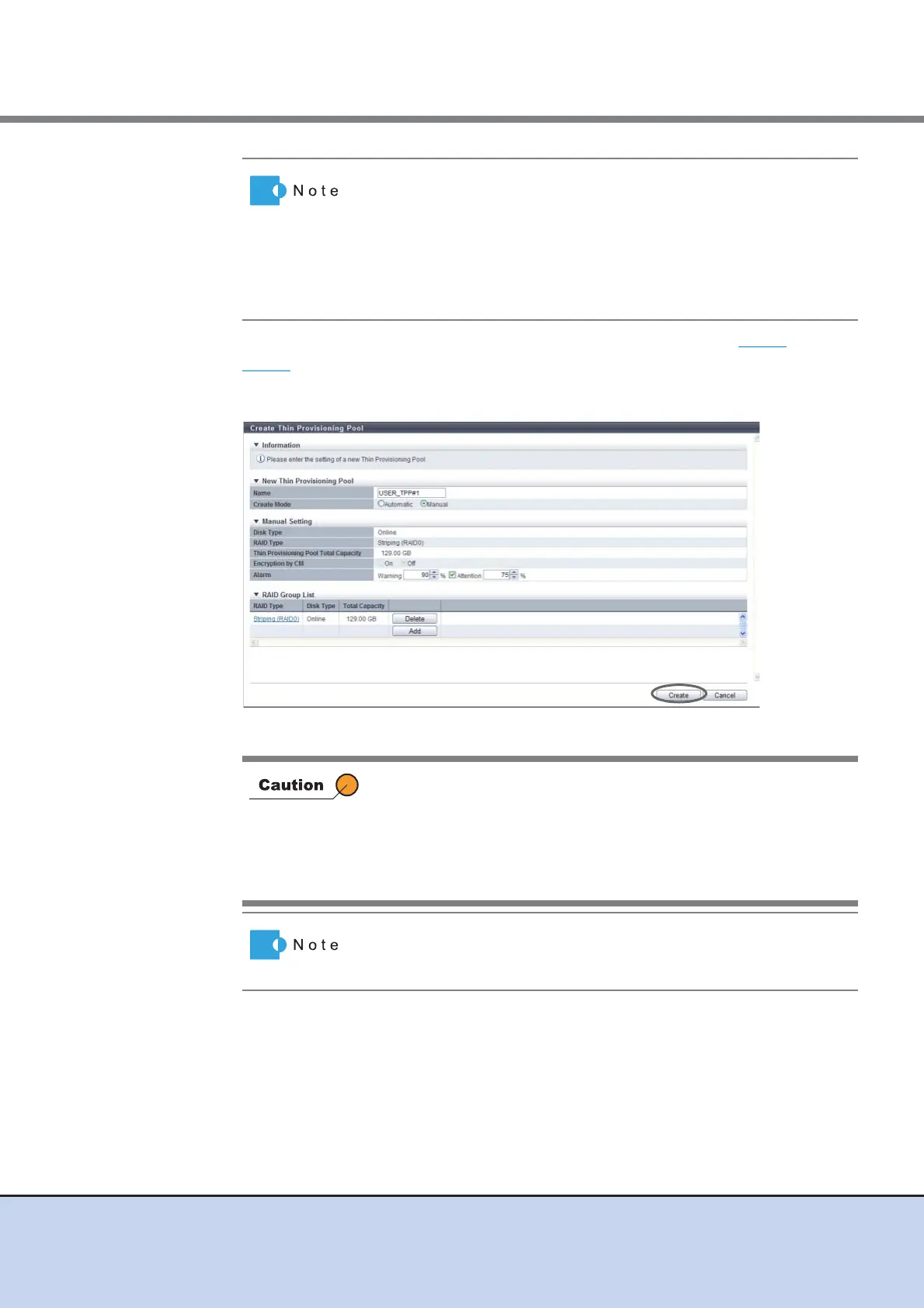 6 After creating a RAID group that configures the TPP, click the [Create] button.