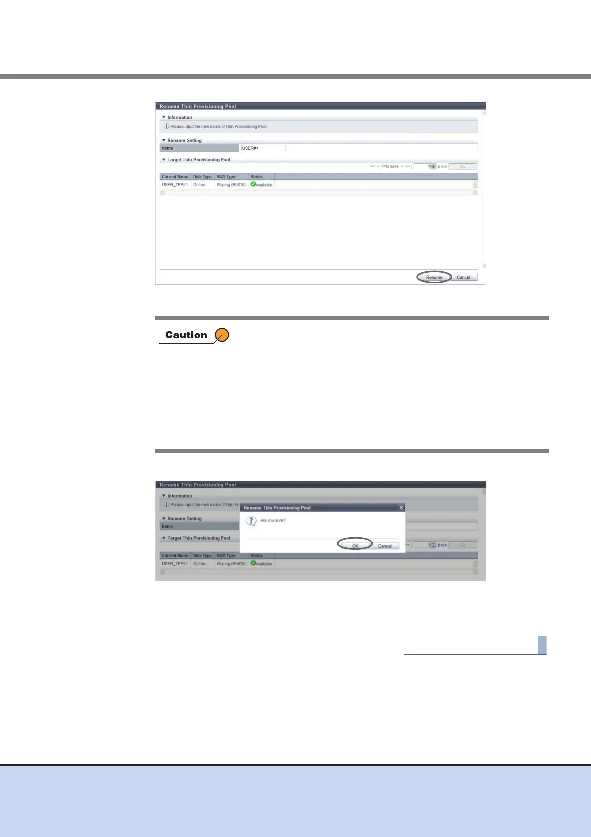 → Rename Thin Provisioning Pool starts.