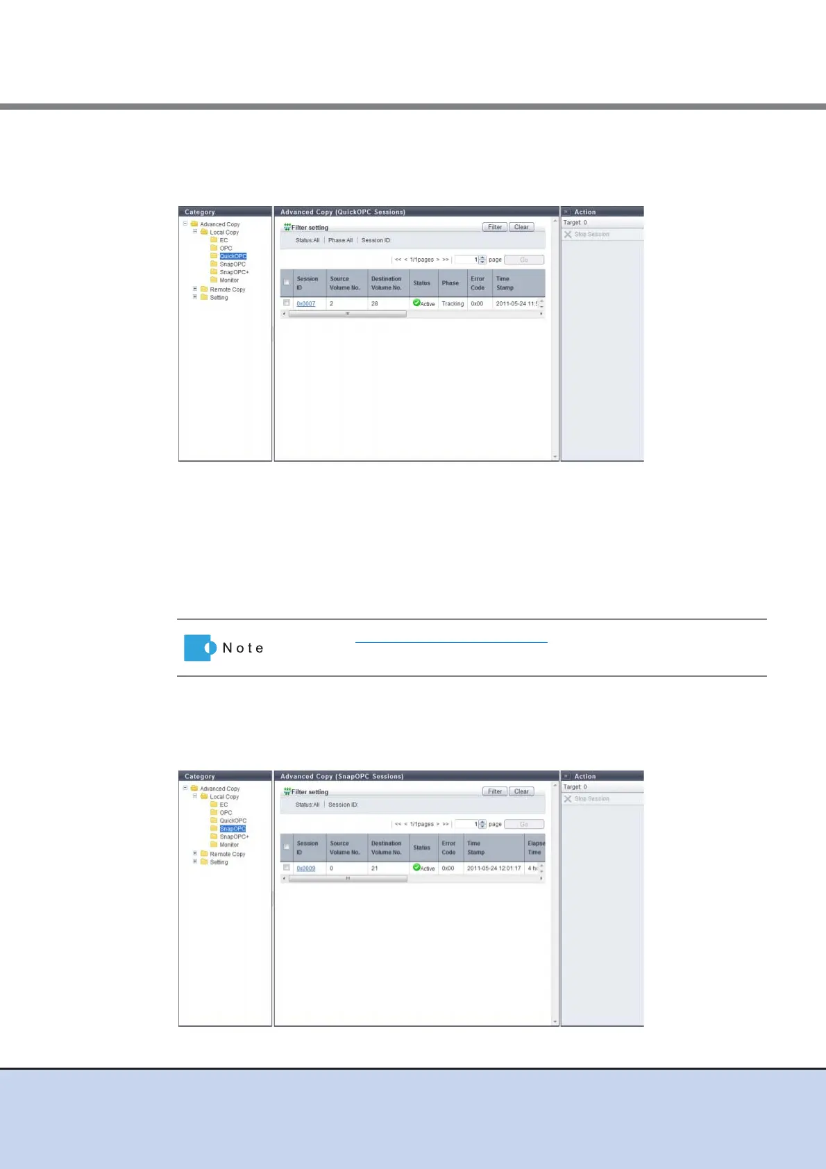 from the time when recopy started is displayed. When tracking stops, the modified data size is
