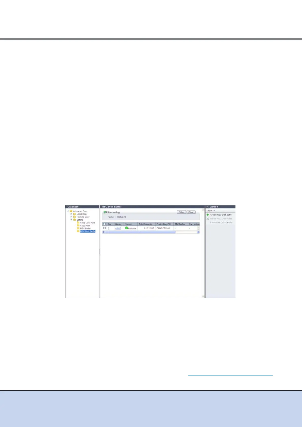 The REC Disk Buffer status is displayed. Refer to "B.3 RAID Group Status" (page 614)