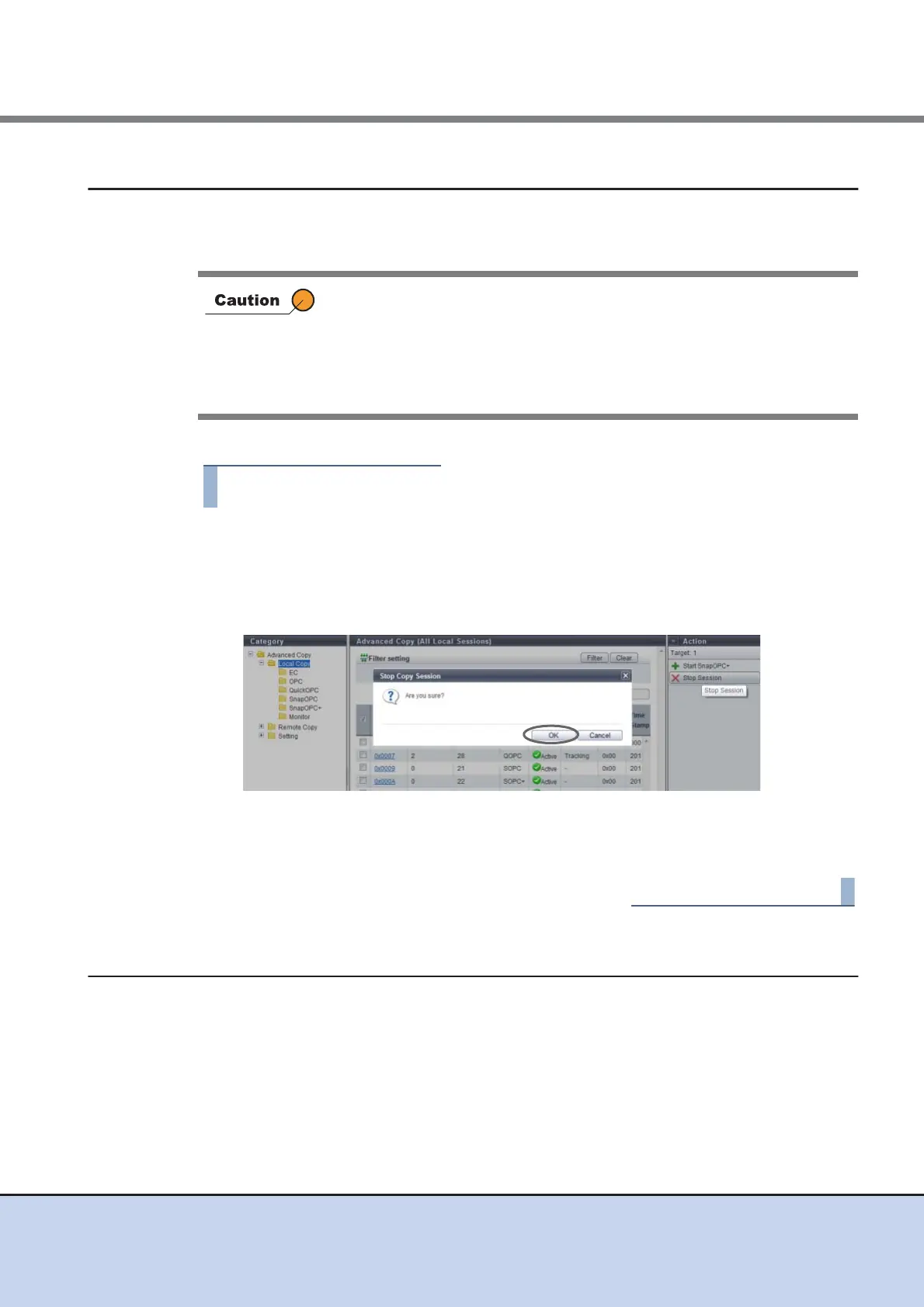 1 Select the copy session to be stopped (multiple selections can be made) and