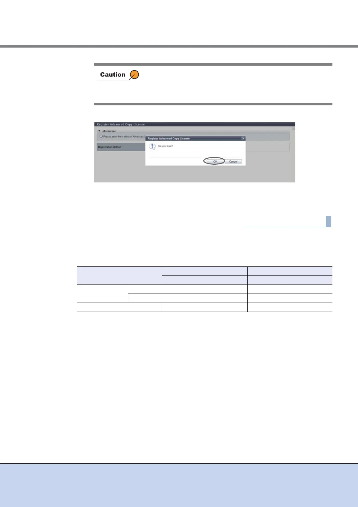 • When the entered Advanced Copy license key does not satisfy
