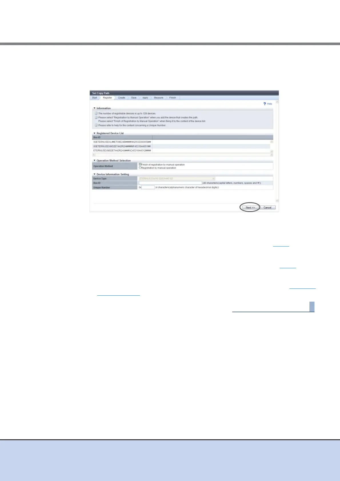 → The [Copy Path Creation Device Selection] screen appears. Proceed to "Set Copy