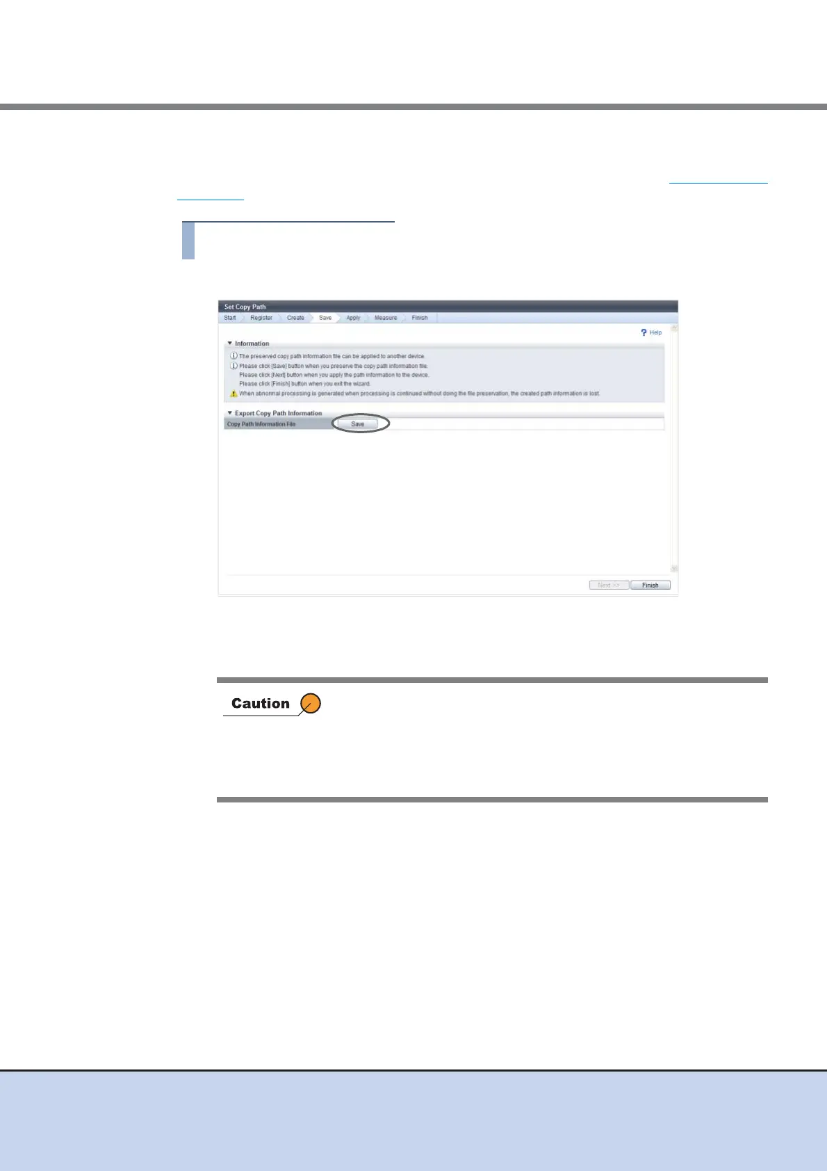 In this screen, save the copy path information that is created in the procedure in "Set Copy Path"