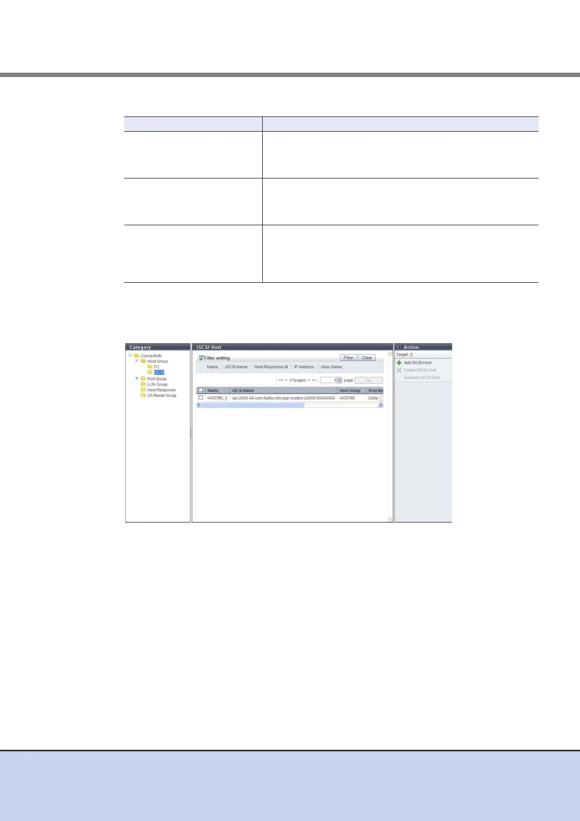 In this screen, registered iSCSI hosts in the ETERNUS DX Disk storage system are displayed.