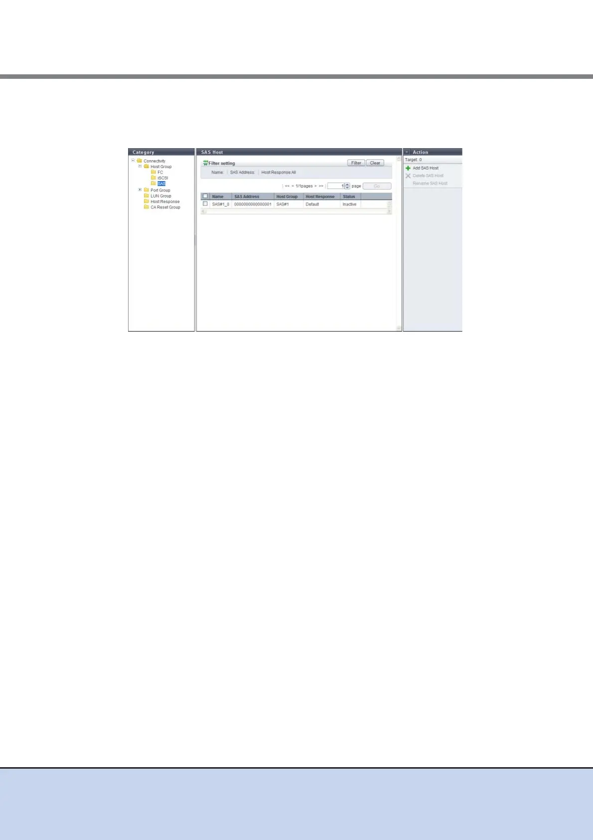 In this screen, registered SAS hosts in the ETERNUS DX Disk storage system are displayed.