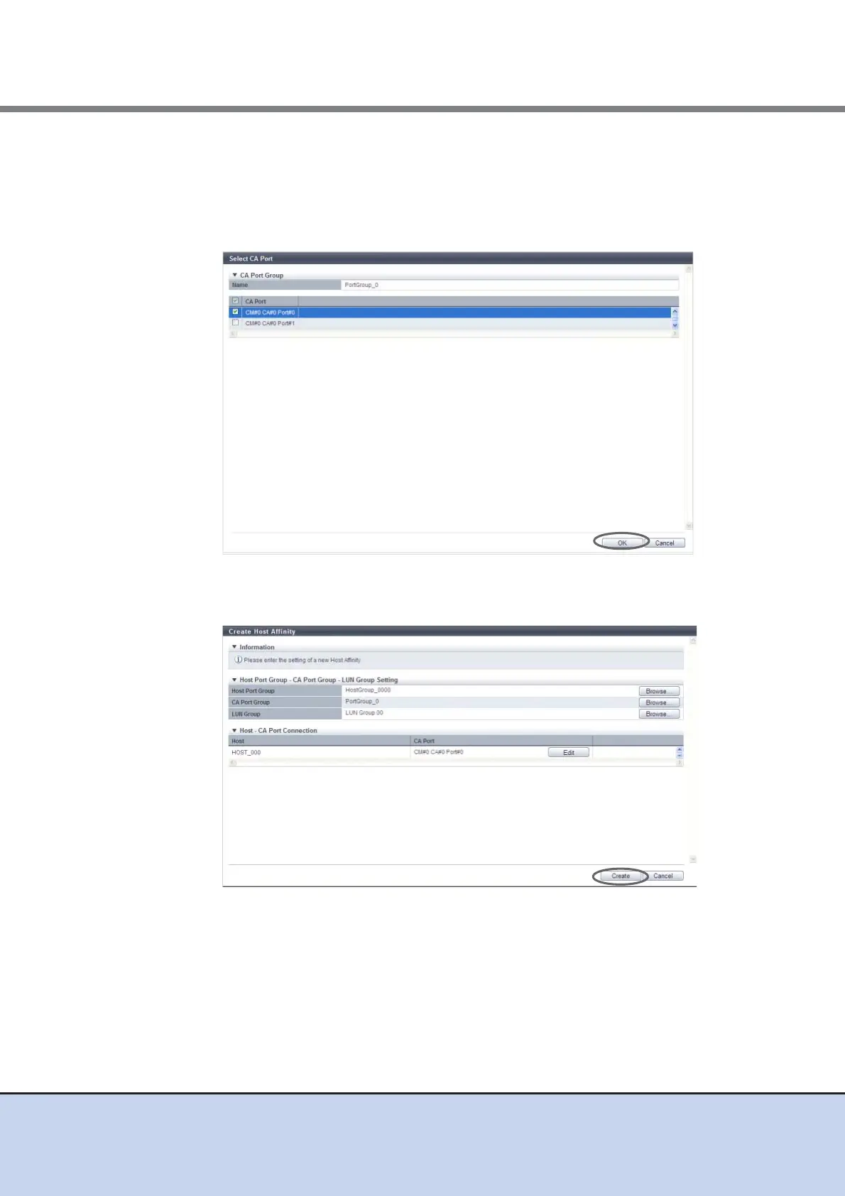 10 Confirm the host affinity setting and the path between the host and the CA port,