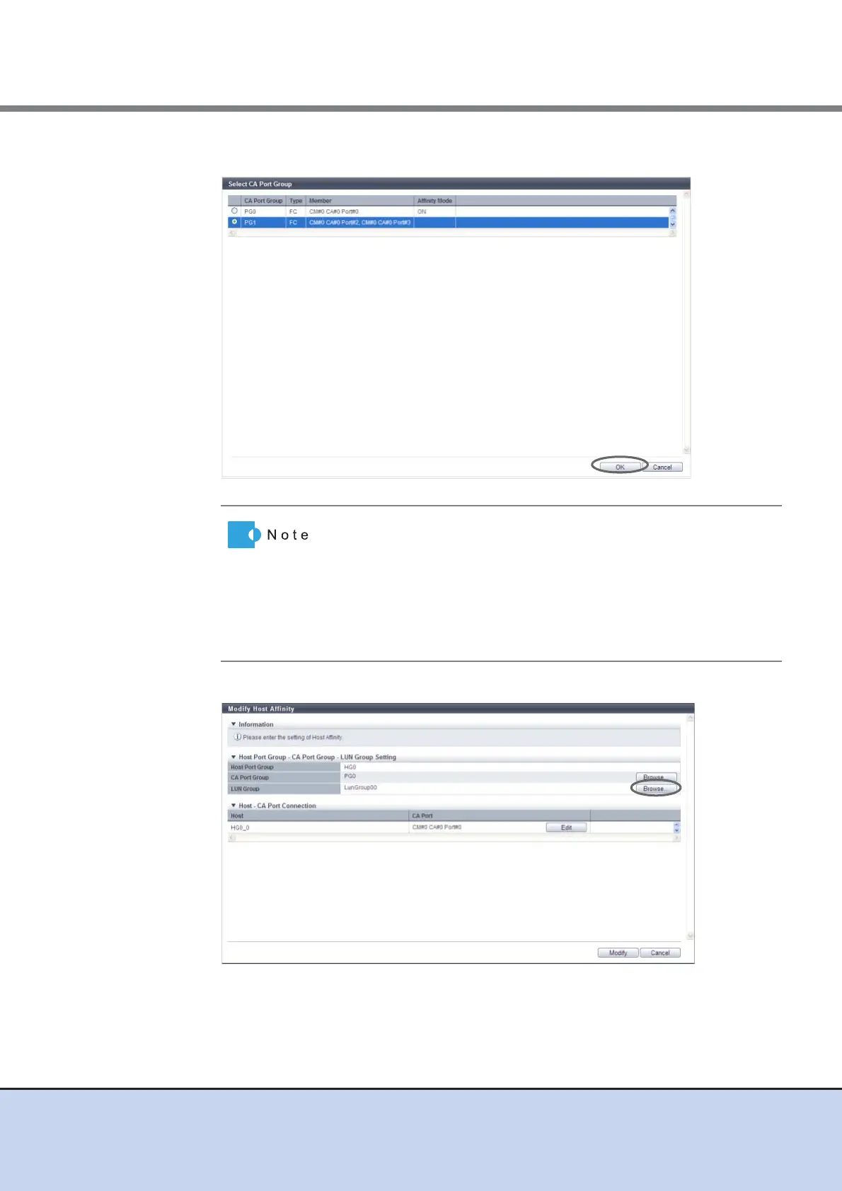 3 Select a CA port group to configure a host affinity, and click the [OK] button.