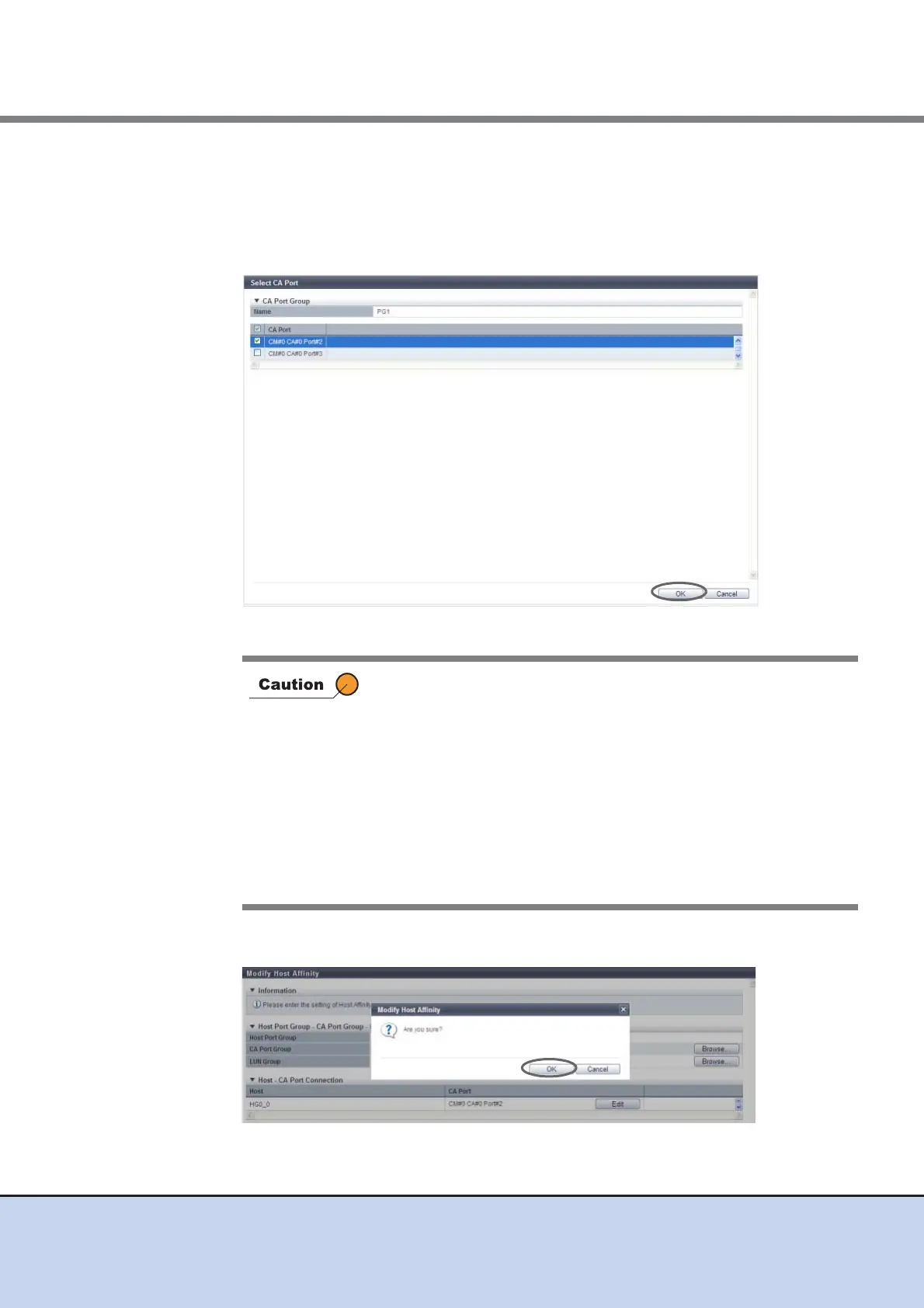 • When the host interface of the host group and the CA type of the