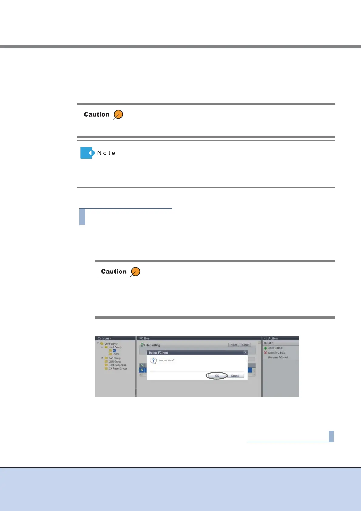 1 Select the FC host to be deleted (multiple selections can be made) and click