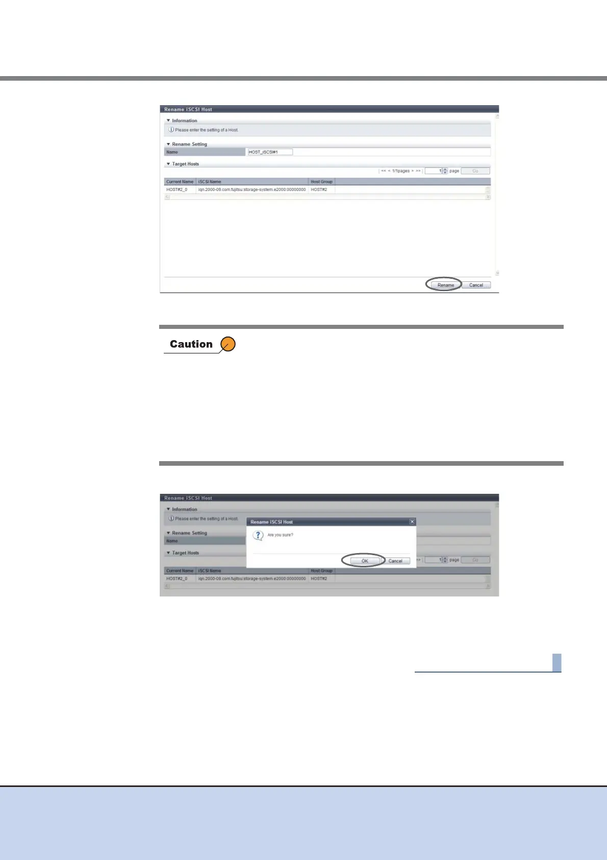 → Renaming of the iSCSI host starts.