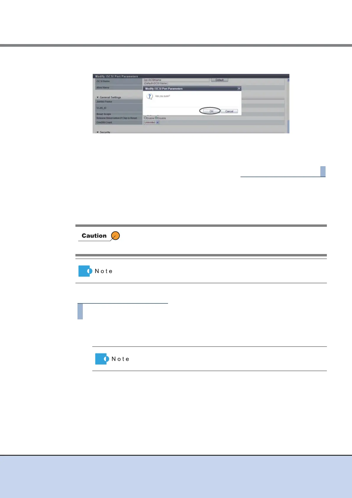 → Modification of the iSCSI port parameters starts.