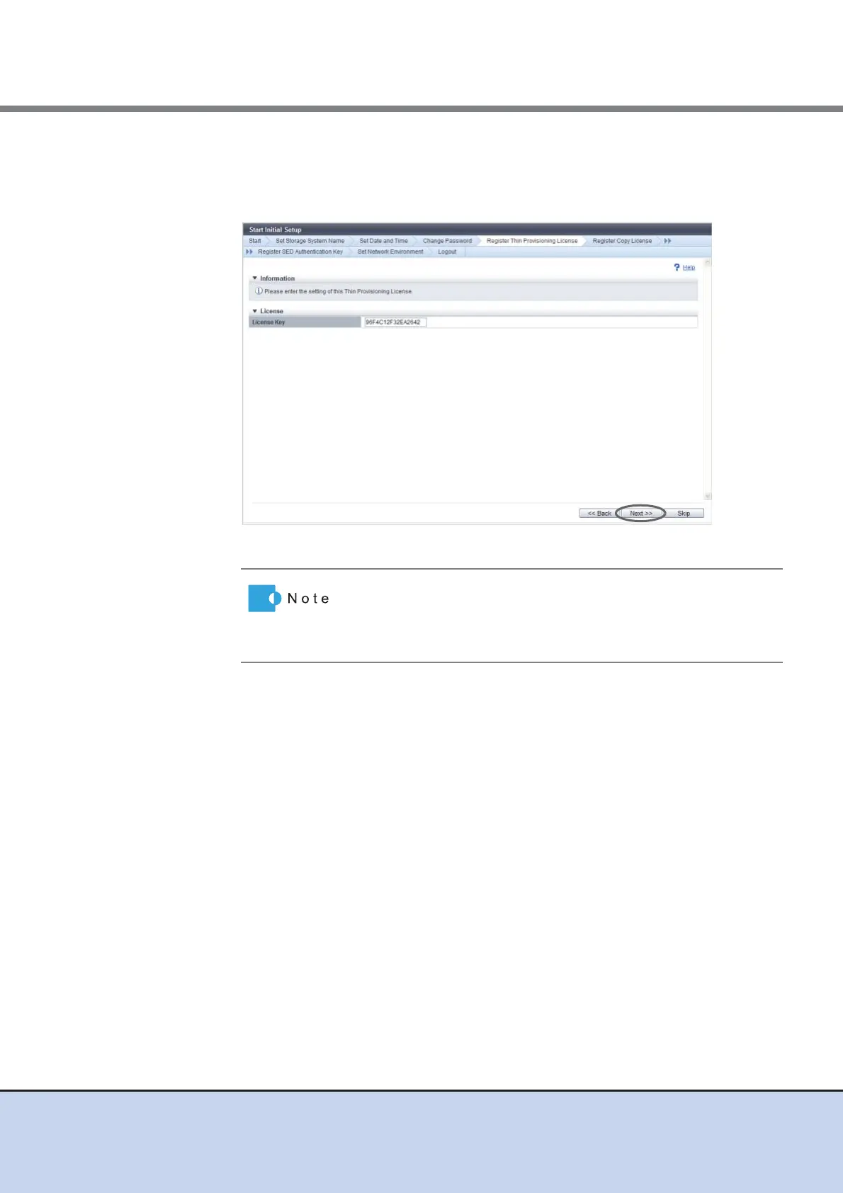 6 Proceed to [Register Thin Provisioning License].