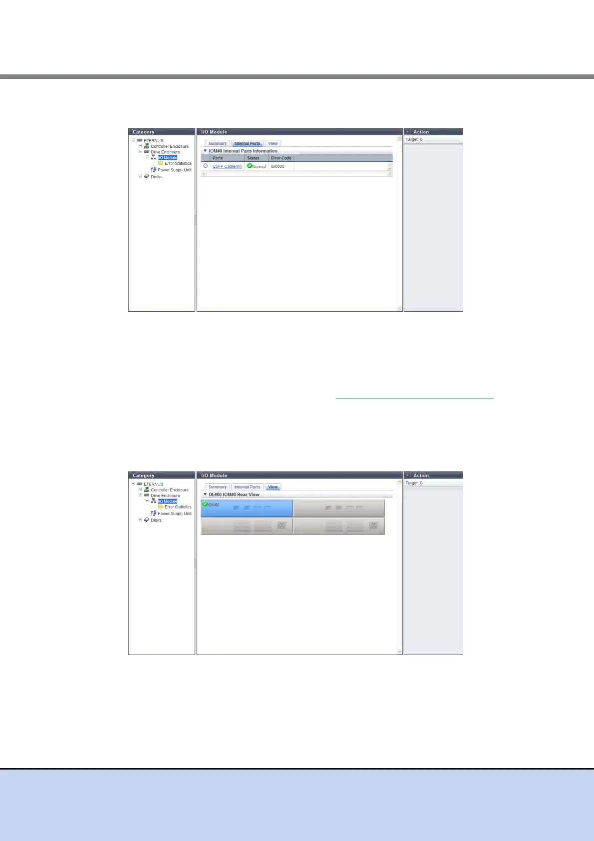 The SAS cable status is displayed. Refer to "B.5 Component Status" (page 615)