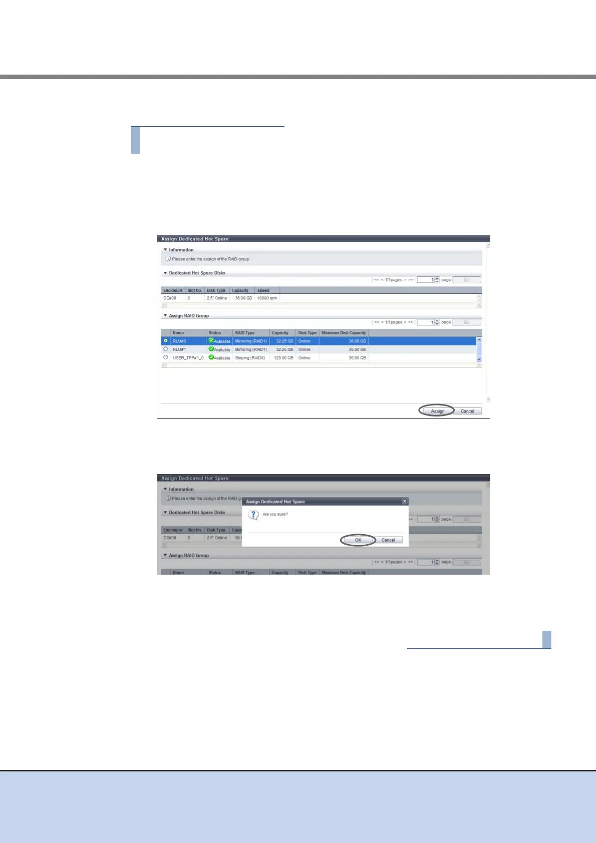 1 Select a drive that is to be used as a Dedicated Hot Spare and click [Assign