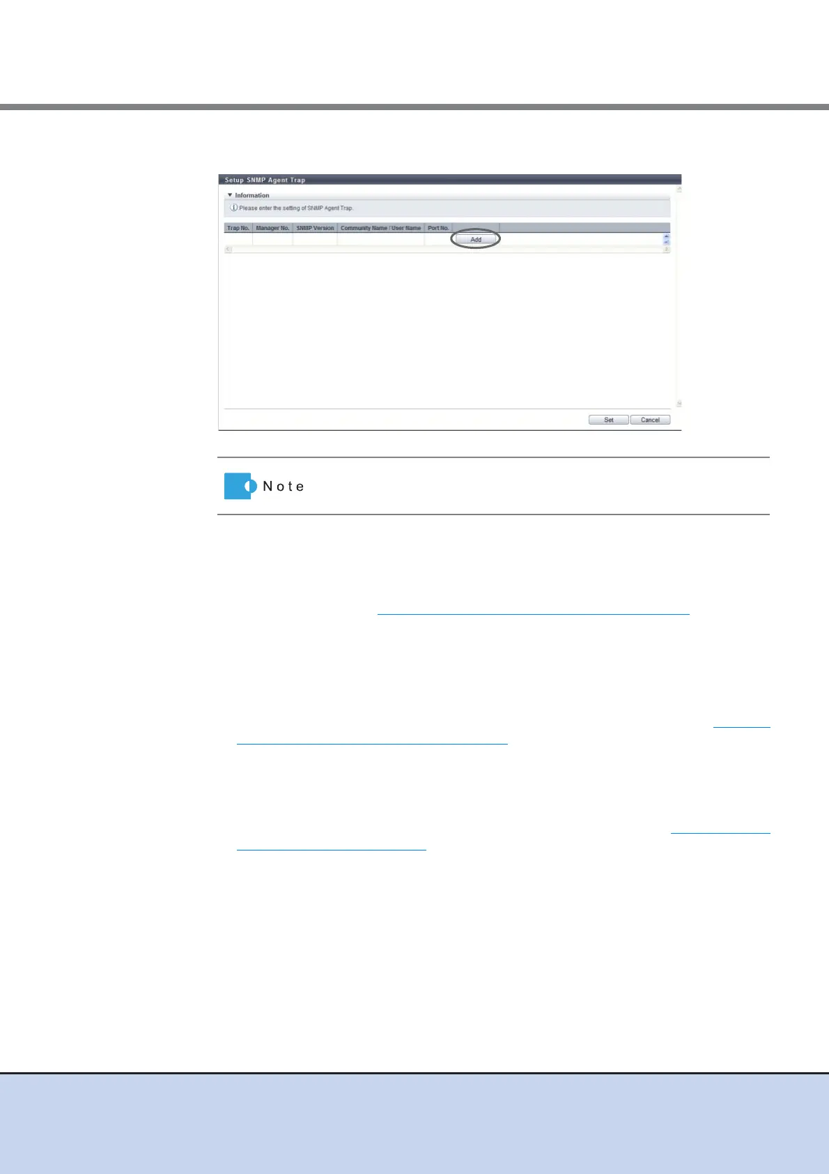 using the procedure in "11.2.3.4 Setup SNMP Agent Manager" (page 466)