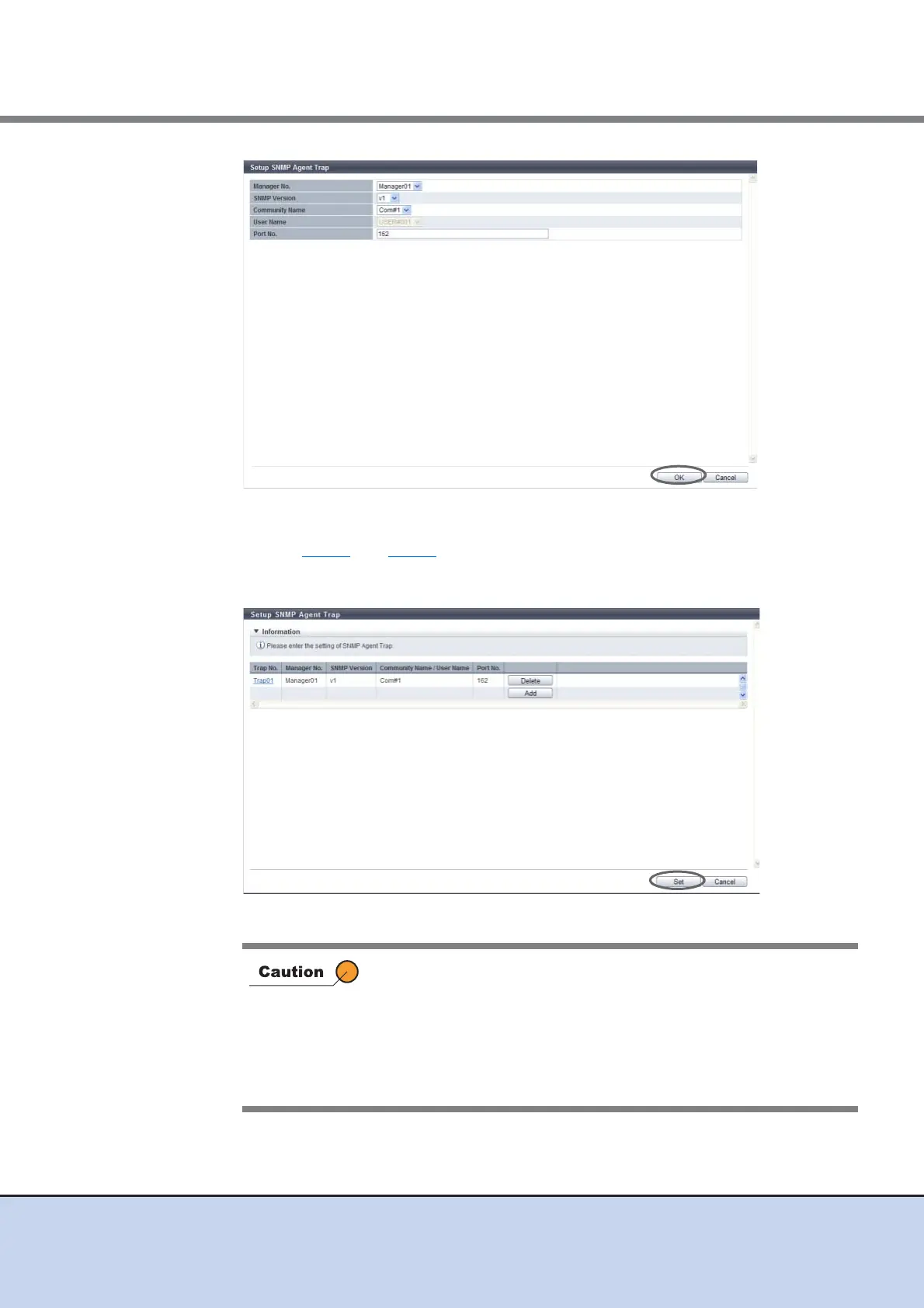 5 After adding or editing the trap information, click the [Set] button.