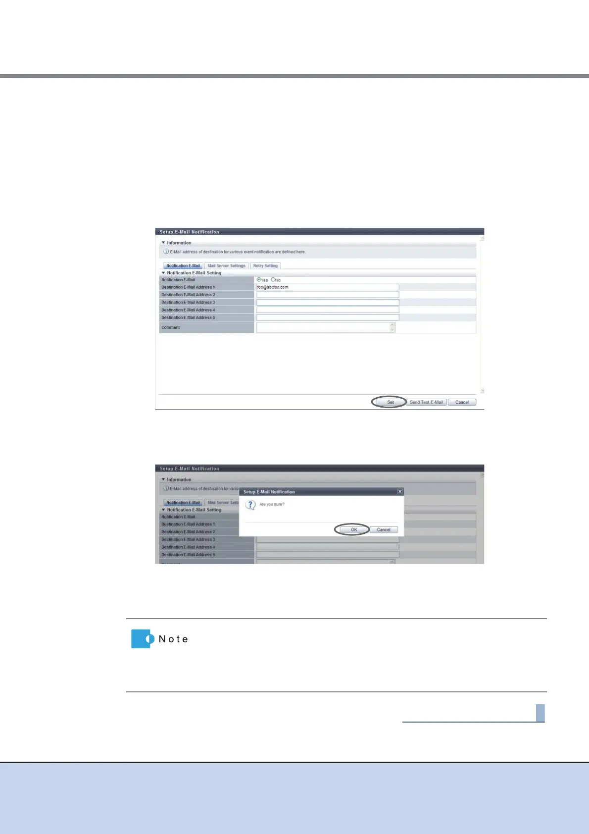 "Notificate E-Mail" setting. Note that clicking [Set] button is required when