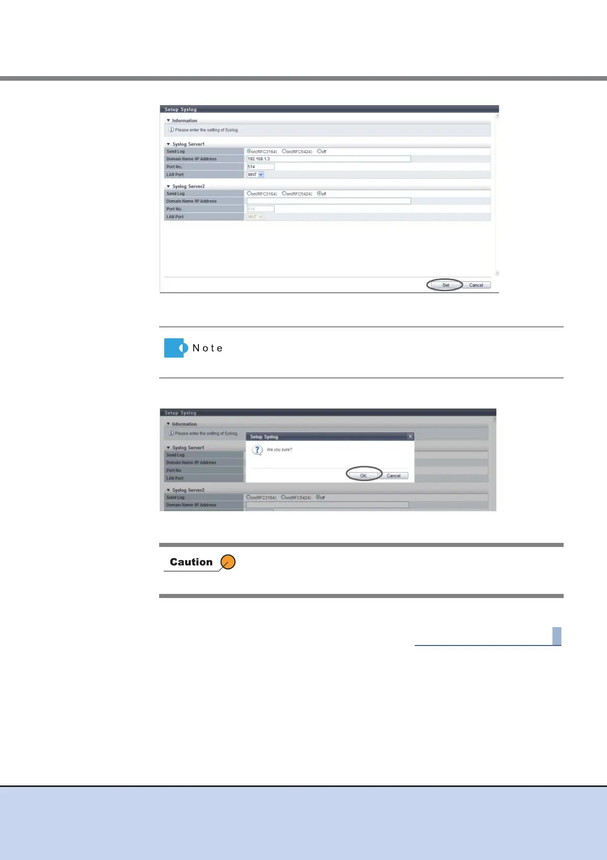 Up to two Syslog servers can be configured. When configuring a