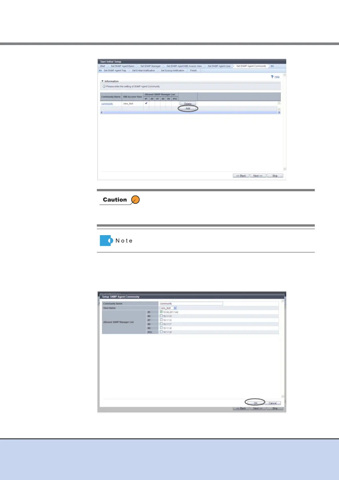The [Set SNMP Agent Community] function must be set when