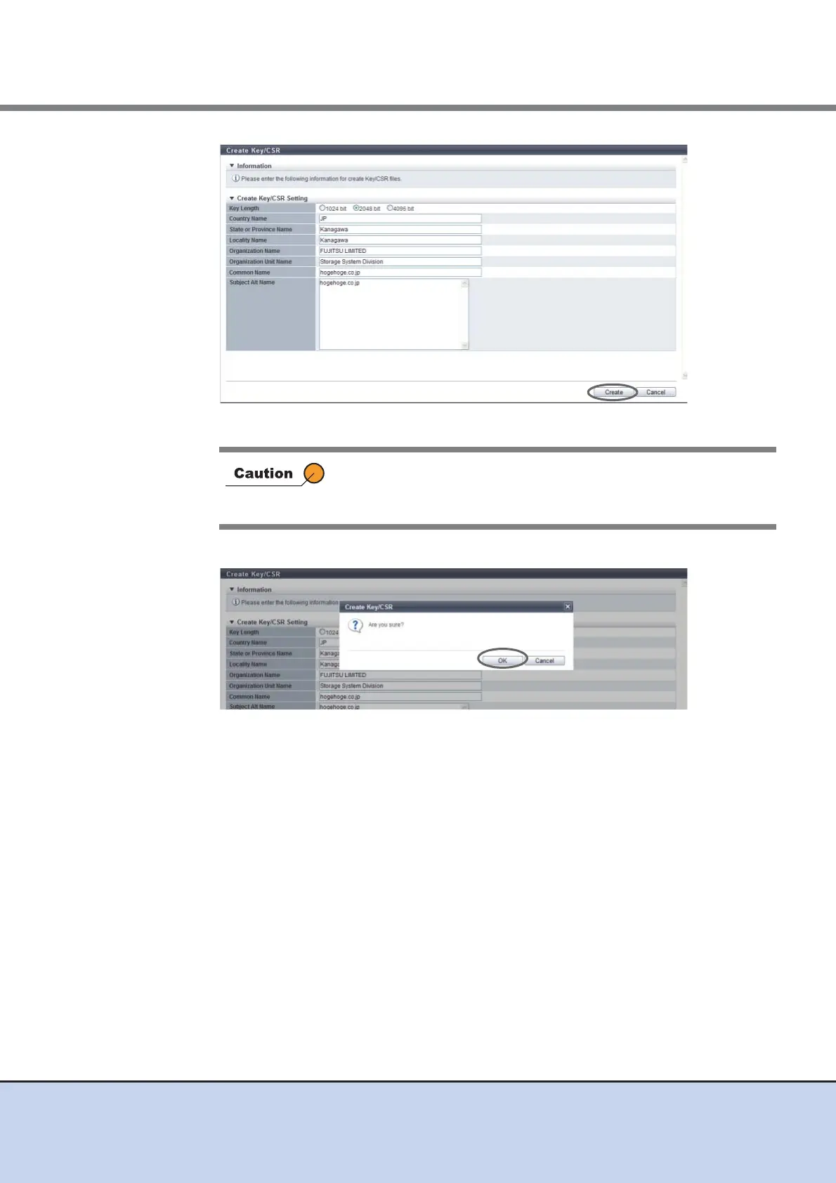 → The creation of the CSR starts. When the creation of the CSR is complete, the screen