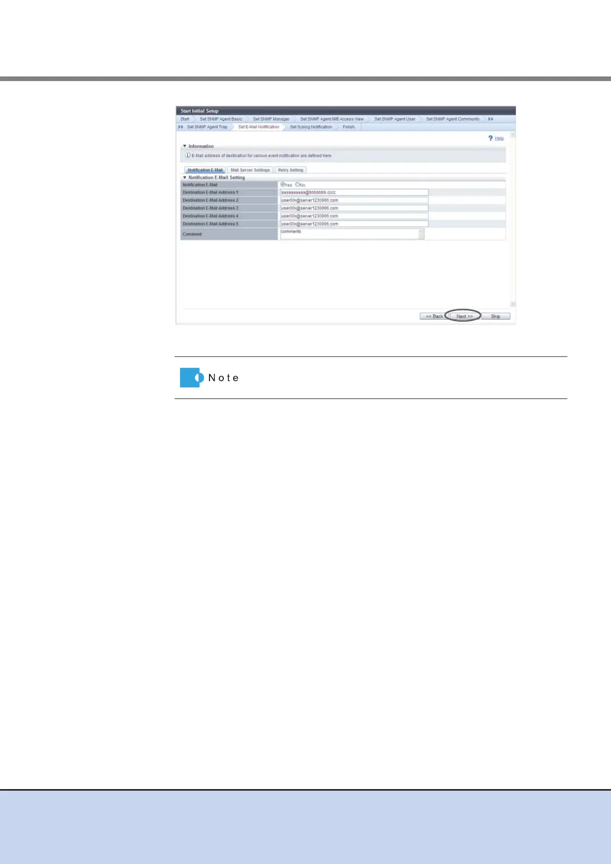 → Setting of the E-Mail Notification starts.