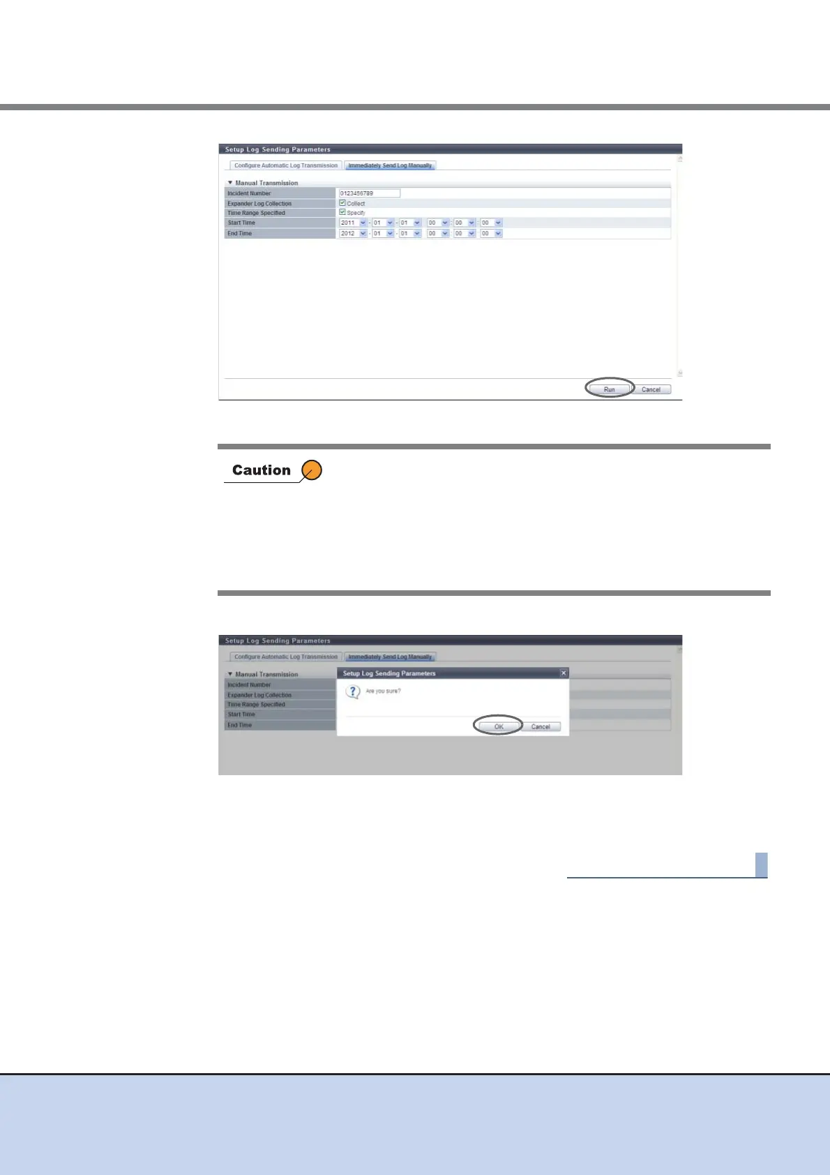 → Log transmission (Immediately Send Log Manually) is executed.