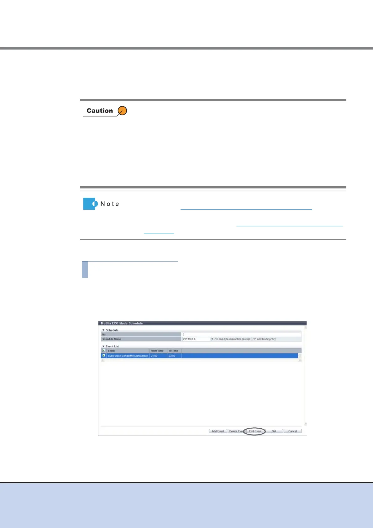 procedure in "6.2.7 Assign ECO Mode Schedule" (page 131)