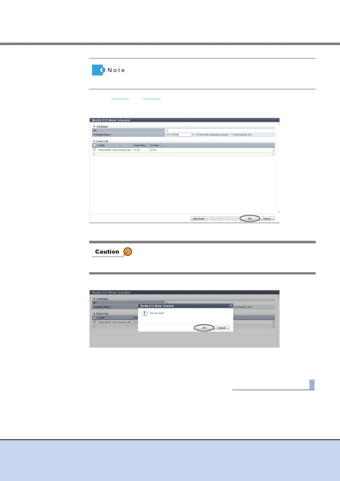 5 After editing all the events, click the [Set] button.