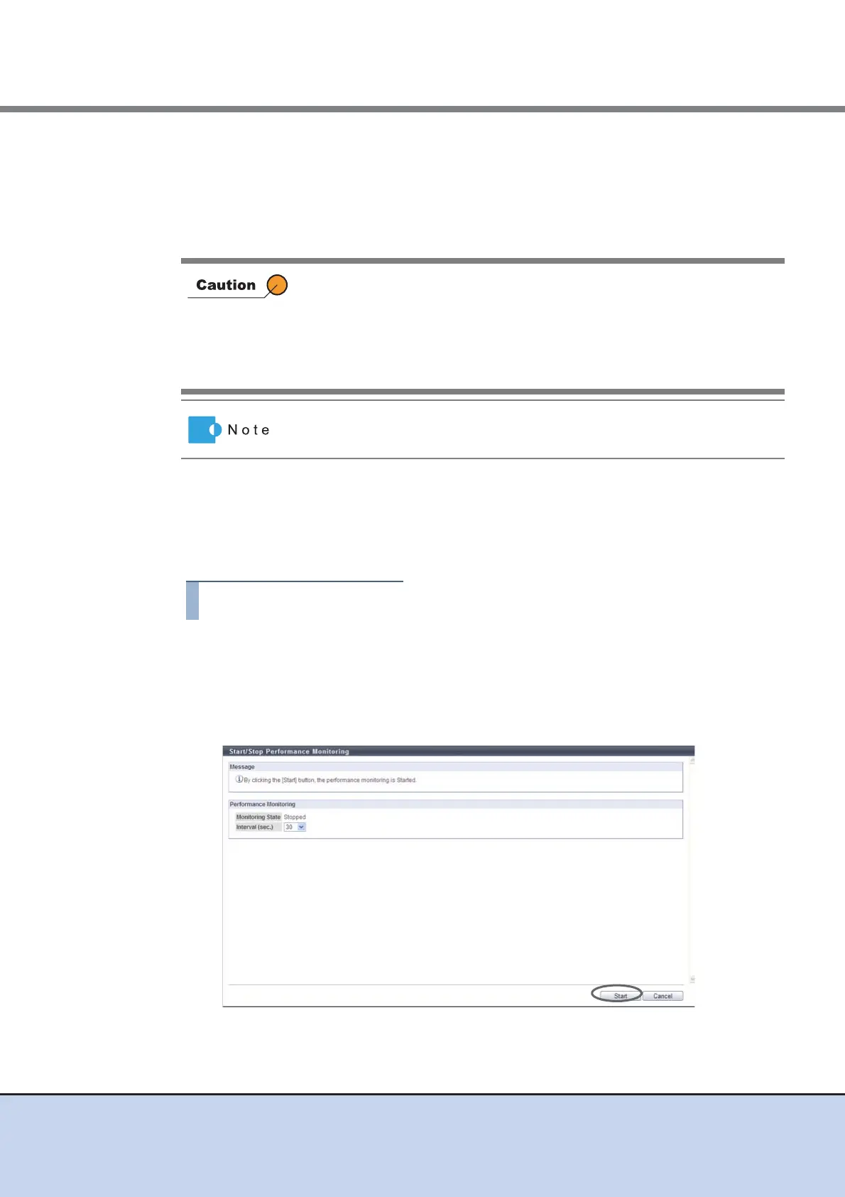 The Start/Stop Performance Monitoring function is used to start or stop acquiring the ETERNUS